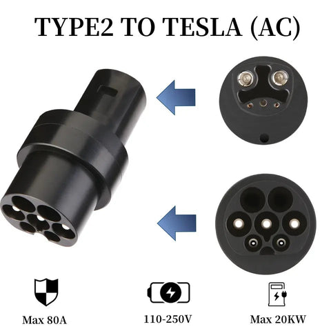 Wir haben zwei Arten von TYPE2-Adaptern entwickelt: Der AC 80A-Adapter kann in AC-Ladegeräten verwendet werden. Der DC 200A Adapter kann nur in Tesla Supercharger verwendet werden, (wir haben DC200A Version in unserem Shop).